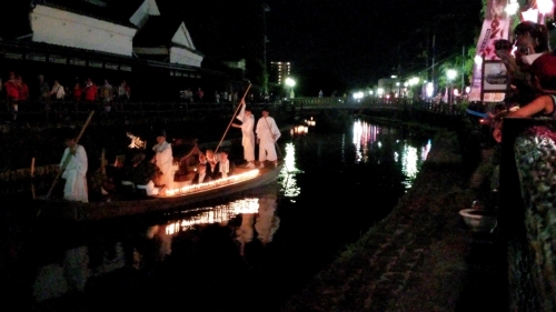 イベント ホーム イベント検索 百八灯流し 百八灯流し ひゃくはっとうながし 栃木地域 夏(6〜8月) 市の無形民俗文化財に指定されている百八灯流しは、男体山信仰に基づき船禅頂になぞらえて始めたもので、巴波川で灯ろう流しが行われます。また、108本のローソクが灯された御神船が雅楽の音の中進む姿は幻想的です。このろうそくは、安産のお守りになると言われています。 開催時期 8月第1日曜日 住所 湊町周辺 TEL 0282-25-2356(栃木市観光協会) 観光所要時間 1時間以内約2~3時間約半日(6時間以上) 最寄り駅 栃木駅 アクセス 東北自動車道栃木ICより車で約15分JR・東武栃木駅から徒歩で約10分 印刷する 画像を投稿する