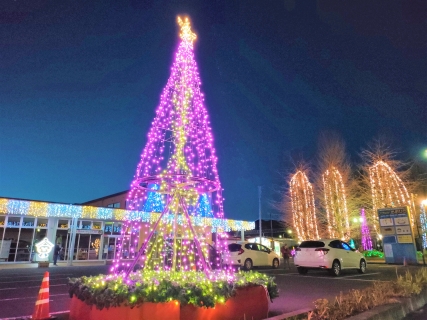 栃木市大平の冬の風物詩「光と音のページェント」が、新大平下駅東口やプラッツおおひらを中心に繰り広げられ、青や赤色に彩られたイルミネーションが冬の空に輝きます。このイベントは、市街地ににぎわいを創出しようと、旧大平町時代の2005年(平成17年)から、地元のまちづくり団体などが実行委員会を組織し開催しています。初日はプラッツおおひらで午後6時の点灯に併せて、地元の中学校吹奏楽部による演奏が行われます。
